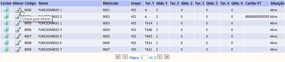 2. Na exibição do resultado utilize os ícones de navegação de visualizar todos os funcionários que deseja alterar.