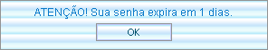 Para manter a segurança de suas informações, o sistema periodicamente informa ao usuário, com antecedência, que sua senha de acesso será descartada, devendo então o usuário alterá-la até o prazo informado.