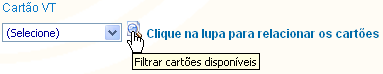 · Pode-se associar um funcionário a um cartão de VT disponível. Para isso clique no botão de filtrar (lupa) para exibir os cartões disponíveis que correspondam às características de utilização diária do funcionário.