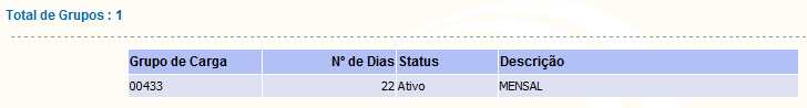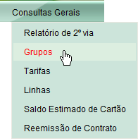 Você pode consultar os grupos de cargas selecionando a opção: CONSULTAS à GRUPOS.