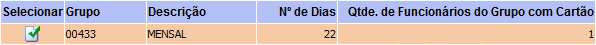 8. Clicando no botão NÃO CARREGAM os dados de carga são atualizados e o número de dias de carga de cada cartão do grupo será zerado.