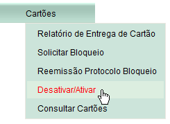 Para desativar ou reativar cartões acesse a opção CARTÕES à DESATIVAR / ATIVAR