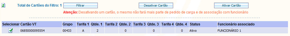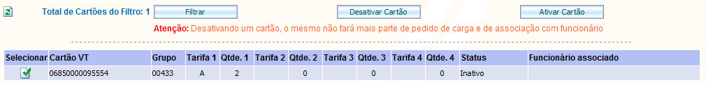Ao desativar um cartão, este não fará mais parte do pedido de carga e também não será associado a um funcionário.