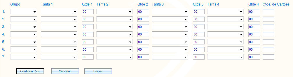 2. Selecione o grupo de carga, as tarifas e quantidades de VT diário.