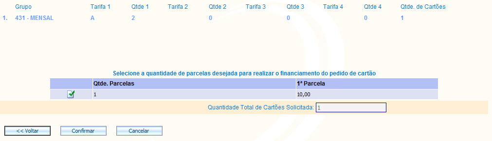 cancelar o pedido de cartões antes de confirmar a solicitação, clique em .