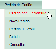 Para solicitar os cartões por funcionários cadastrados selecione a opção PEDIDO DE CARTÃO à PEDIDO POR FUNCIONÁRIO.
