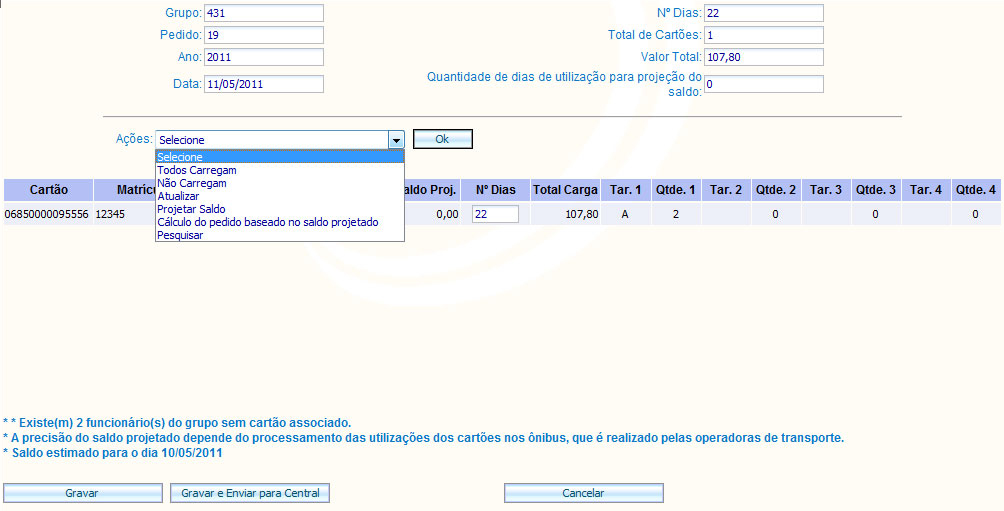 Você pode obter ajuda sobre um item do ?NOVO PEDIDO DE CARGA?, clicando sobre ele com o botão esquerdo do mouse, onde aparecer a imagem: